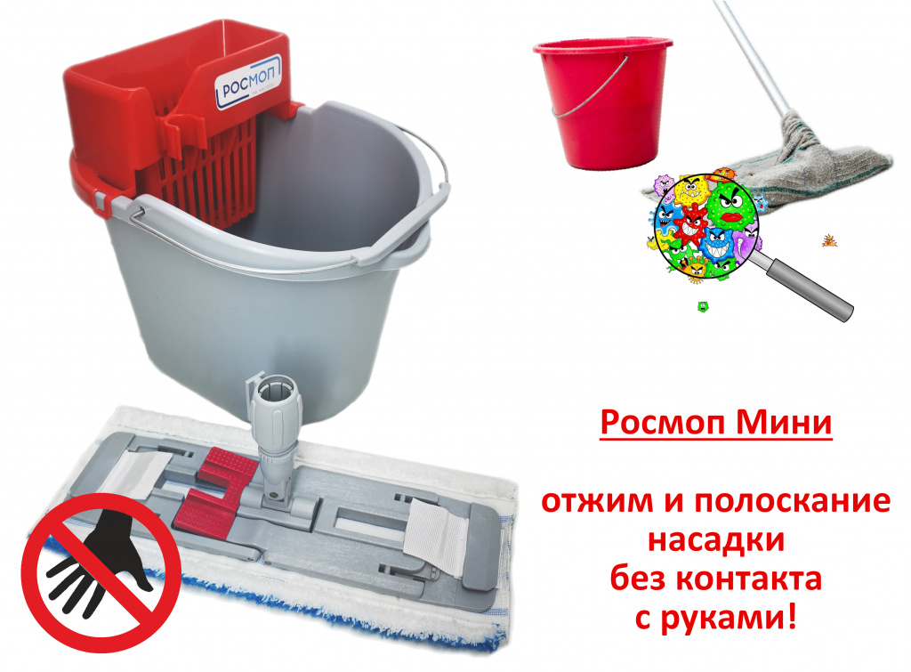 Комплект подходит для мойки пола небольших площадей от 5 до 100 кв.м. В отличии от зарубежных аналогов, комплект Росмоп Мини может использоваться, как для бытового, так и профессионального применения.